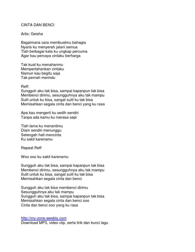 Lirik Lagu Geisha Cinta Dan Benci Lyrics Pdf